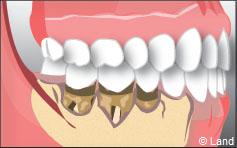 La dent est articulée avec l’os alvéolaire par le ligament alvéolo-dentaire. Il agit comme un amortisseur entre la dent et l’os. Le cément est une couche mince recouvrant la racine et/ou les ligaments parodontaux rattachant la racine à l’os.