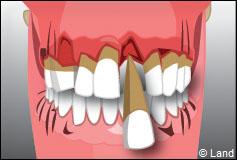 Les tissus de soutien de la dent sont touchés, l’inflammation et l’infection progressent. Les récessions gingivales apparaissent.